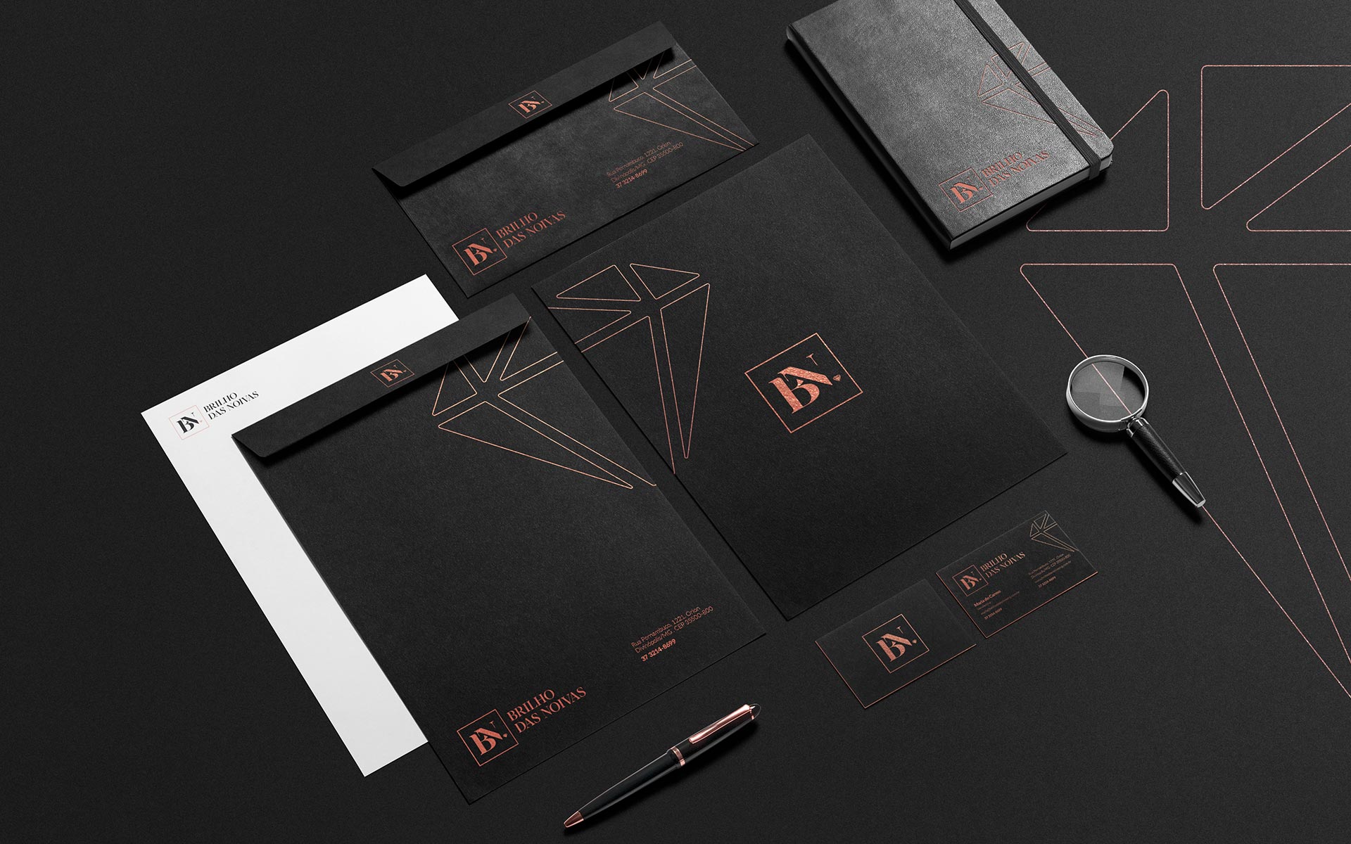 A identidade foi pensada além da tela. Papelaria, embalagens e materiais institucionais foram desenvolvidos para criar um contato físico que vale a pena. Papéis texturizados, relevo e acabamentos metalizados fazem com que cada detalhe reforce o posicionamento da marca — e transformem qualquer entrega em uma experiência memorável.